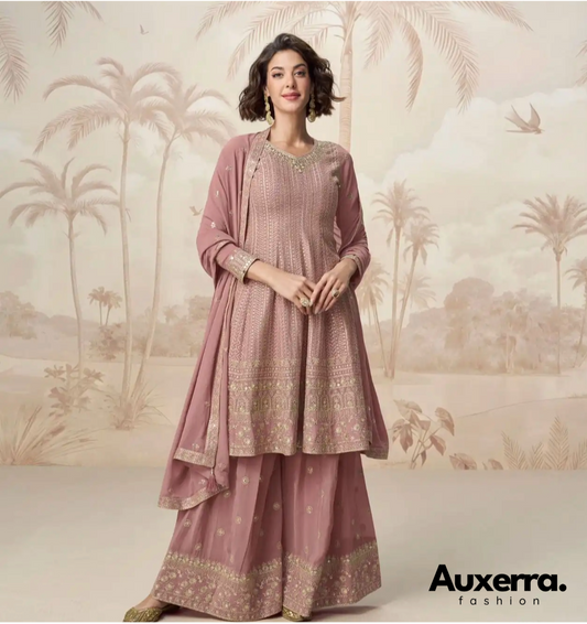 Pastel Mauve Embroidered Georgette Salwar Suit