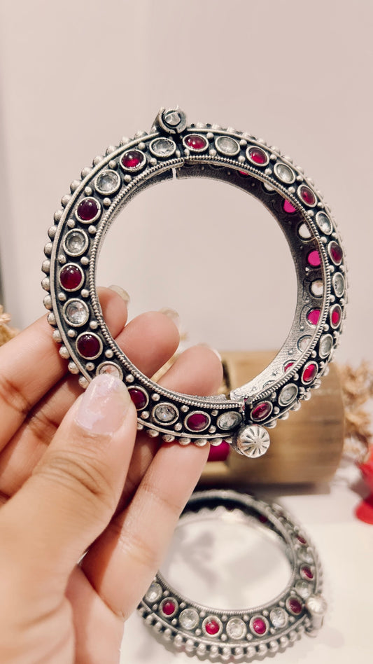 Antique Silver Bangles – Ruby Red, Classic White & Soft Pink Variants