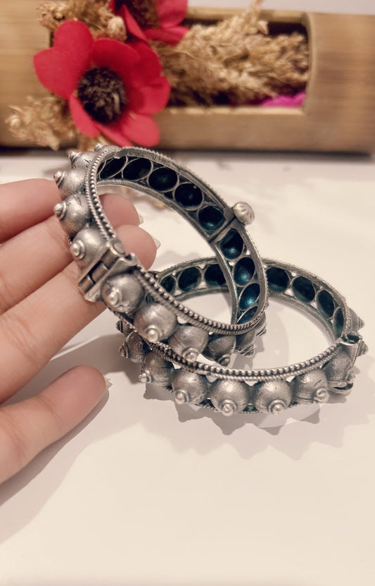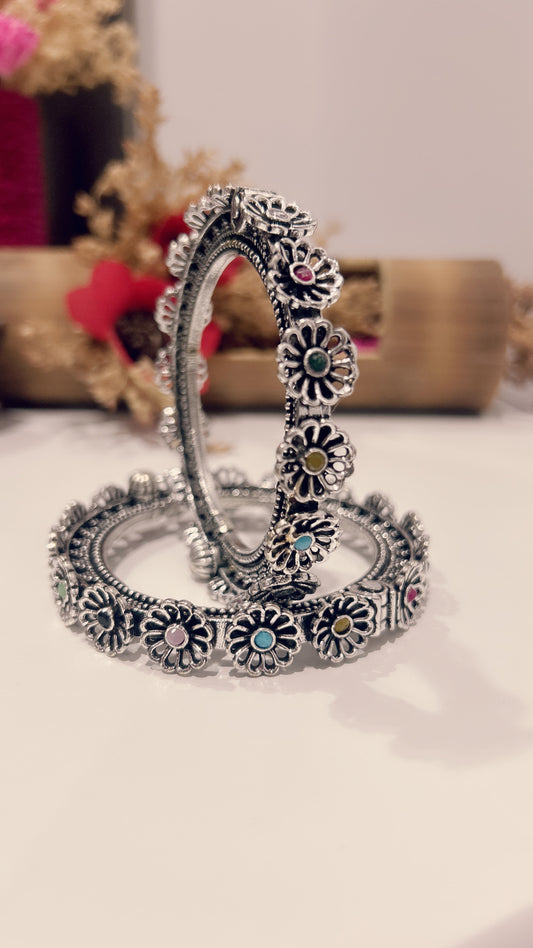 Antique Floral Oxidized Silver Bangles – Multicolor Variants