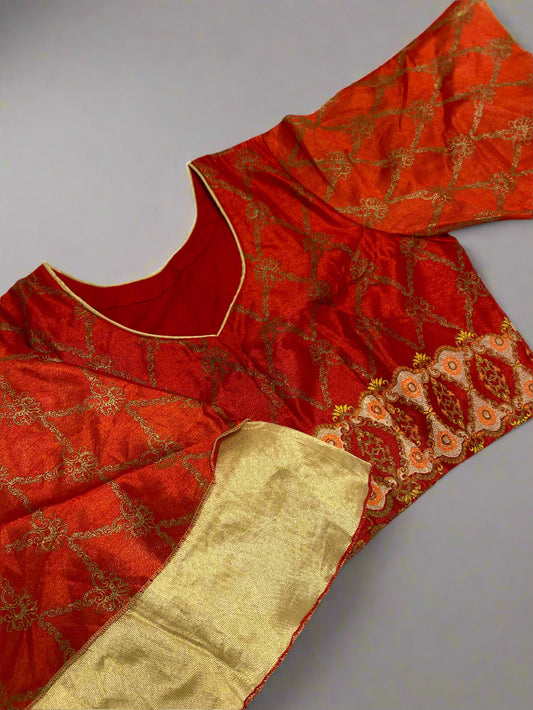 Rust Red and Gold Silk Brocade Blouse