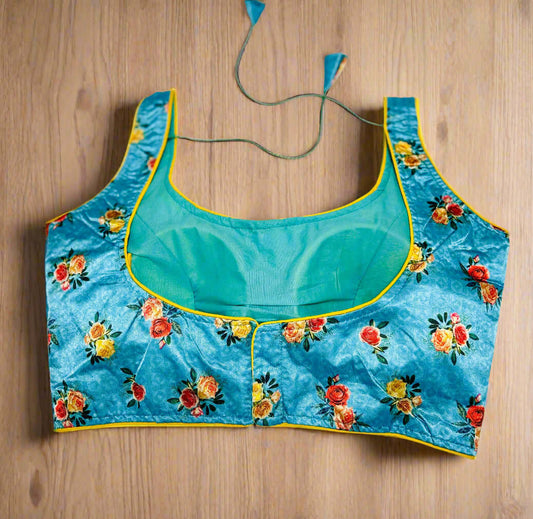 Sky Blue Floral Satin Blouse
