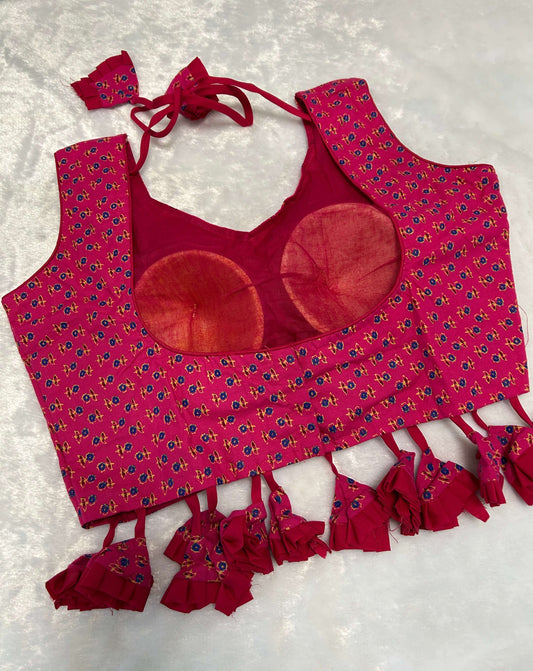 Pink Handblock Cotton Printed Tassel Blouse