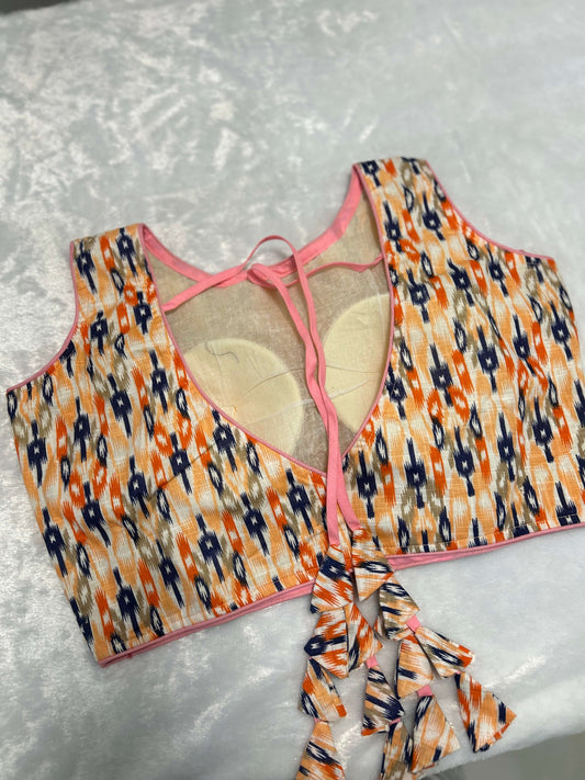 Multicolor Ikat Cotton Tassel Blouse