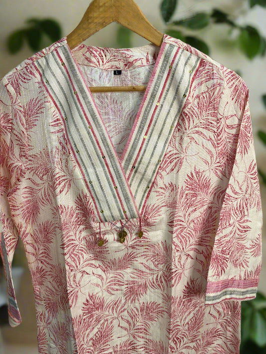 Stylish Cotton Co-ord Set with Pink Leaf and Stripe Design