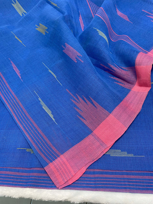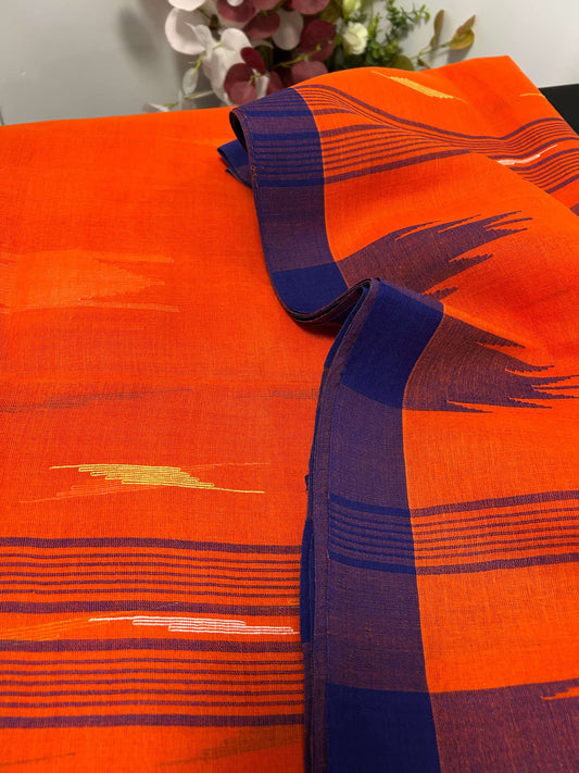 Fiery Orange Manipuri Handloom Saree with Deep Blue Border