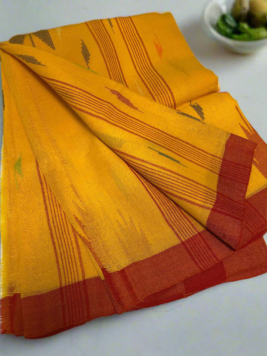 Golden Yellow Manipuri Handloom Saree with Deep Red Border