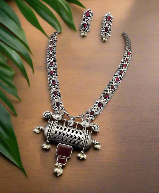 Premium German Silver Antique Ruby Necklace Set