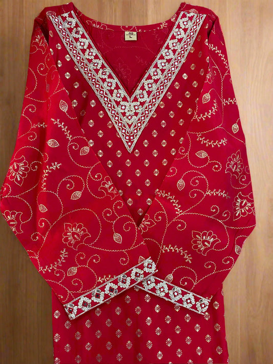Regular price $79.00 AUDRegular priceUnit price / perSale price $79.00 AUDRed Semi-Silk Ethnic Ensemble with Intricate Gold Detailing