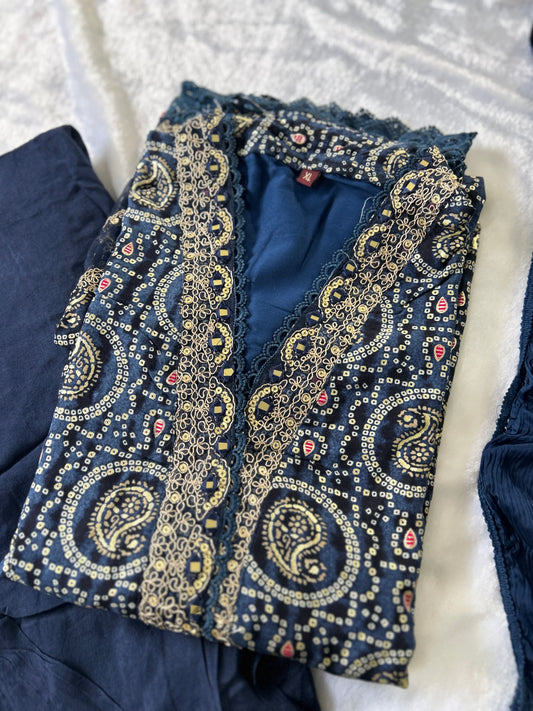 Navy Blue Bandhani Mirror Work Salwar Kameez with Dupatta